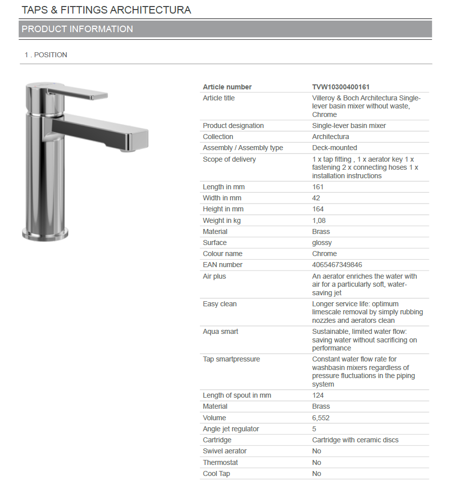 Baterie lavoar V&B – Architectura