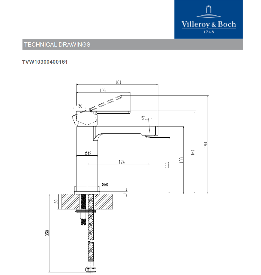 Baterie lavoar V&B – ARCHITECTURA, fara ventil, culoare Chrome