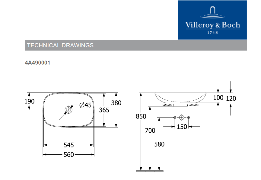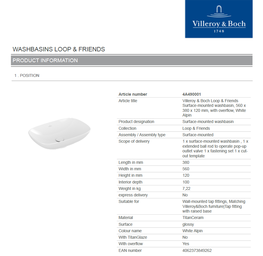 Lavoar V&B – Loop&Friends Slim, rectangular, 56 x 38 cm